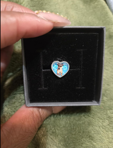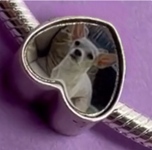 Me encanta poder llevar a mi perrito conmigo. La imagen se ve clara y no se ha dañado con el uso diario. No pesa y combina muy bien con otros charms.